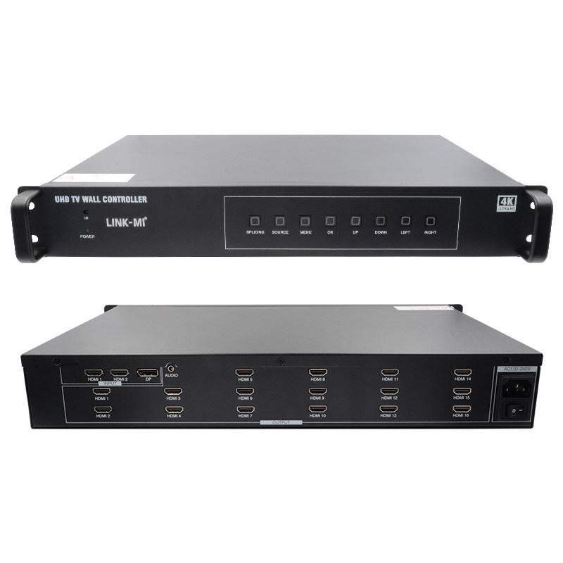Kontroler ściany wideo LINK-MI LM-TV16P jest zaprojektowany do dystrybucji sygnału wideo do wielu urządzeń wyświetleniowych (takich jak telewizor LCD, ekran LCD Ultra Narrow Edge, projektor itp.)Jest wyposażony w HDMI 1..4, wejścia HDMI 2.0 i DP 1.2; 16 wyjściów HDMI; obsługuje rozdzielczość wejścia do 3840*2160@60Hz; a każda rozdzielczość wyjścia obsługuje 1920*1080P@60Hz.