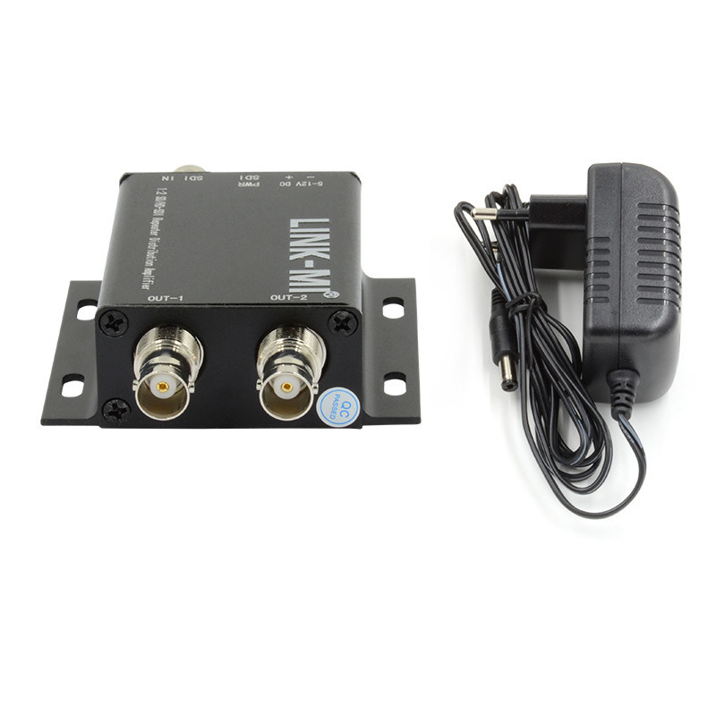 LINK-MI LM-SS12 SD/HD-SDI/3G-SDI 1:2 Repeater& Distribution Amplifier to 1 do 2 powtarzacz i wzmacniacz dystrybucyjny z funkcją Re-clockingu.Następnie przesyła dwa wyjścia SDI w czasie rzeczywistym. It is a reliable video device splitting a SDI or HD-SDI video source to two 3G-SDI or HDSDI or SD-SDI display at the same time and takes one input then re-clocks and equalizes the signal and distributes it to two identical outputs.