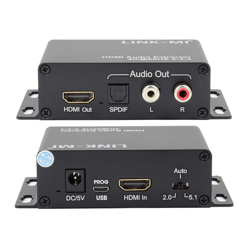 LINK-MI LM-HC03 to 4K HDMI Audio Extractor. Jest używany do ekstrakcji cyfrowego sygnału audio HDMI z wejścia HDMI. Wspiera rozdzielczość do 4K@60Hz YUV 4:4:4